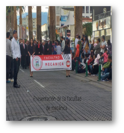 La Facultad de Mecánica también realizo una gran presentación por su puesto encabezando los carros alegóricos de cada una de las carreras de esta facultad que fueron muy llamativos. Donde se encontraban las reinas de belleza de cada una de las escuelas de la facultad de mecánica, ellas haciendo énfasis de la belleza de la mujer politécnica.